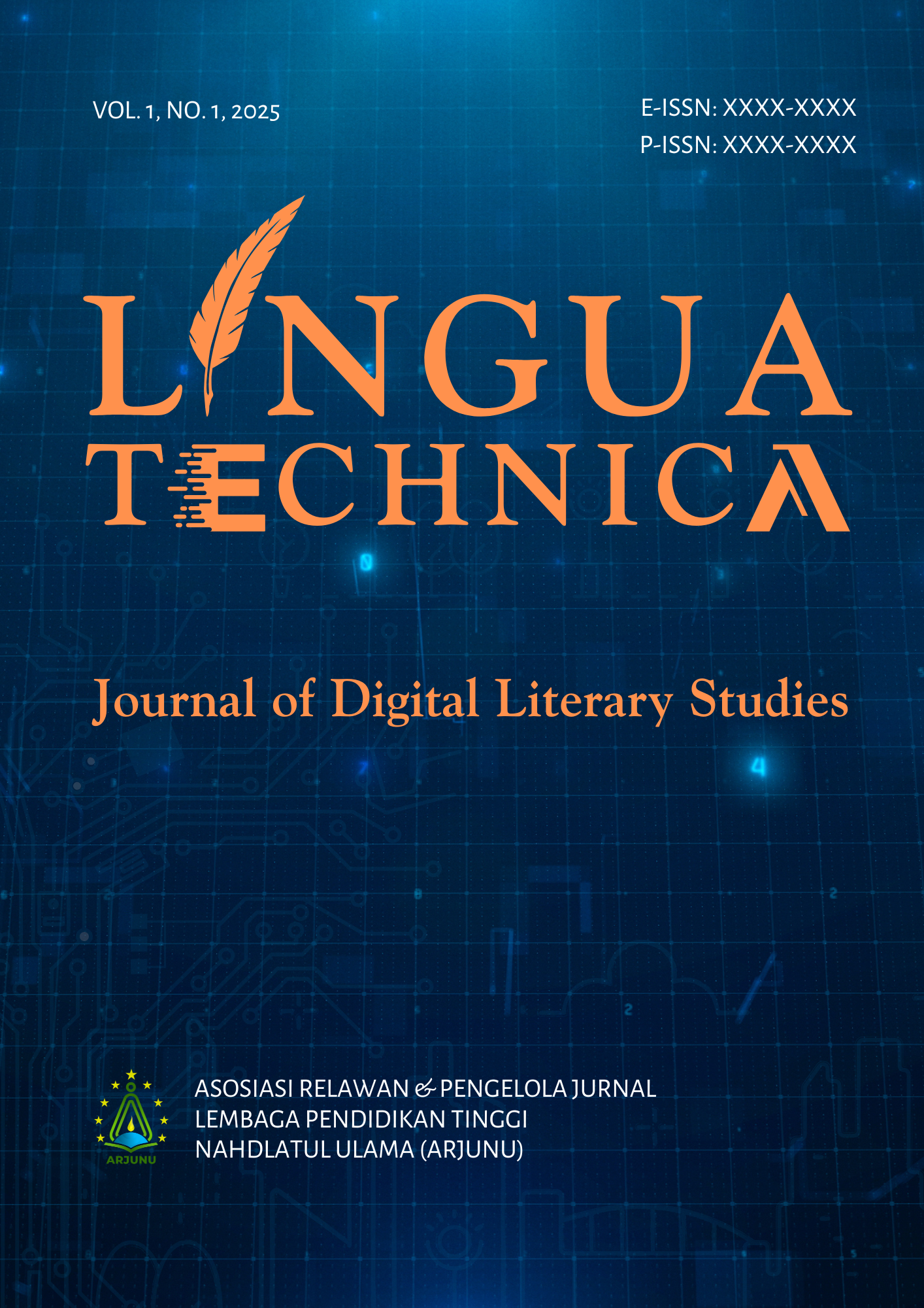 Lingua Technica: Journal of Digital Literary Studies is a peer-reviewed international journal published by Asosiasi Relawan dan Pengelola Jurnal LPTNU (ARJUNU). This journal is dedicated to exploring the intersection of language, literature, and technology within the realm of digital platforms. The journal covers a wide range of fields, including digital literature, e-poetry, and the relationship between language, literature, and technology in diverse contexts. It investigates the interaction between technology and language in literary works and the innovations in the form and style of literature brought about by digital platforms.